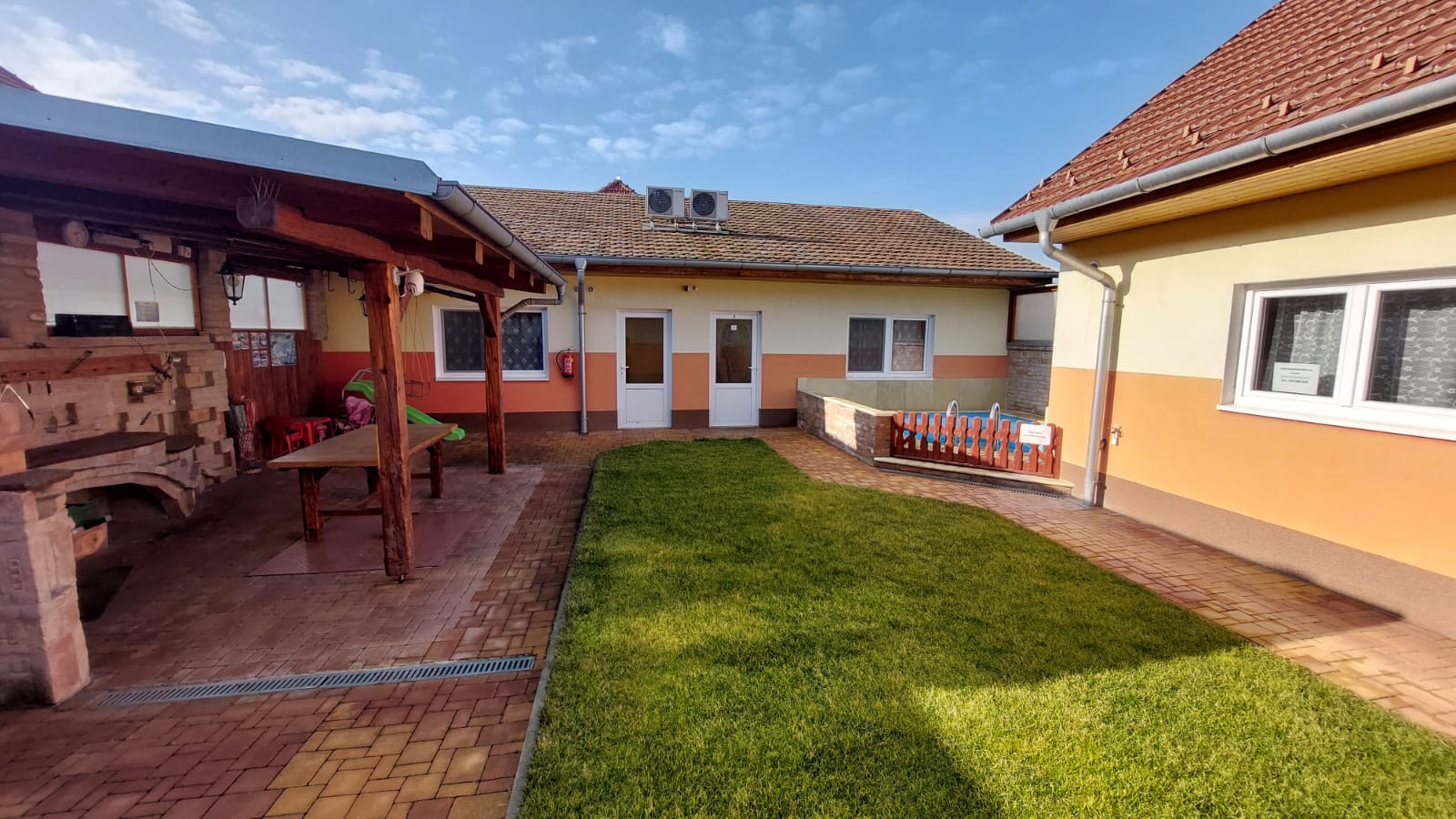 Ve venkovní části můžete využít posezení v pergole s grilem. Dětský koutek pro naše nejmenší ubytované máme hned vedle posezení.