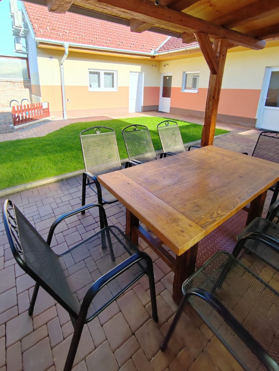 Ve venkovní části je posezení pod pergolou s grilem, které je společné pro všechny ubytované.
